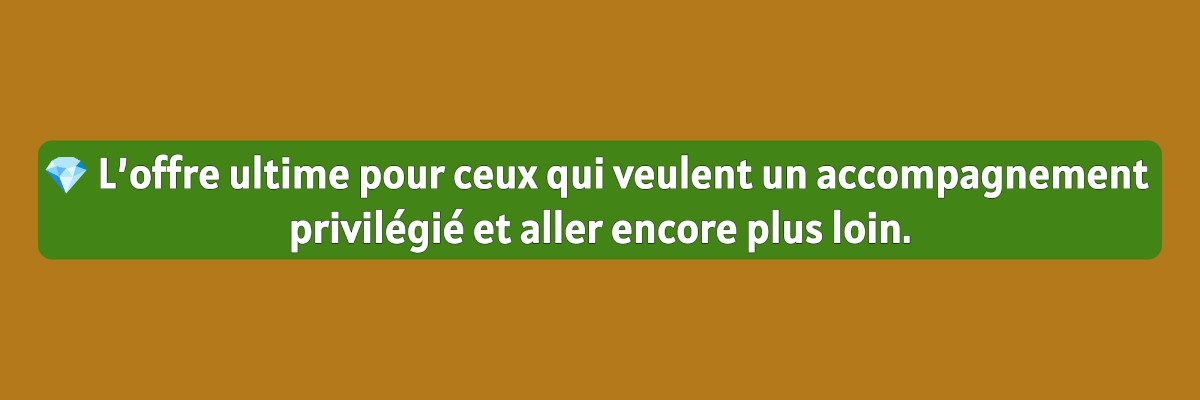 VIP (43,50€/mois) : Tout ce qui est inclus dans les offres Essentiel et Platinium, plus un accompagnement personnalisé via mon compte privé Telegram, et une priorité absolue dans le traitement des questions.